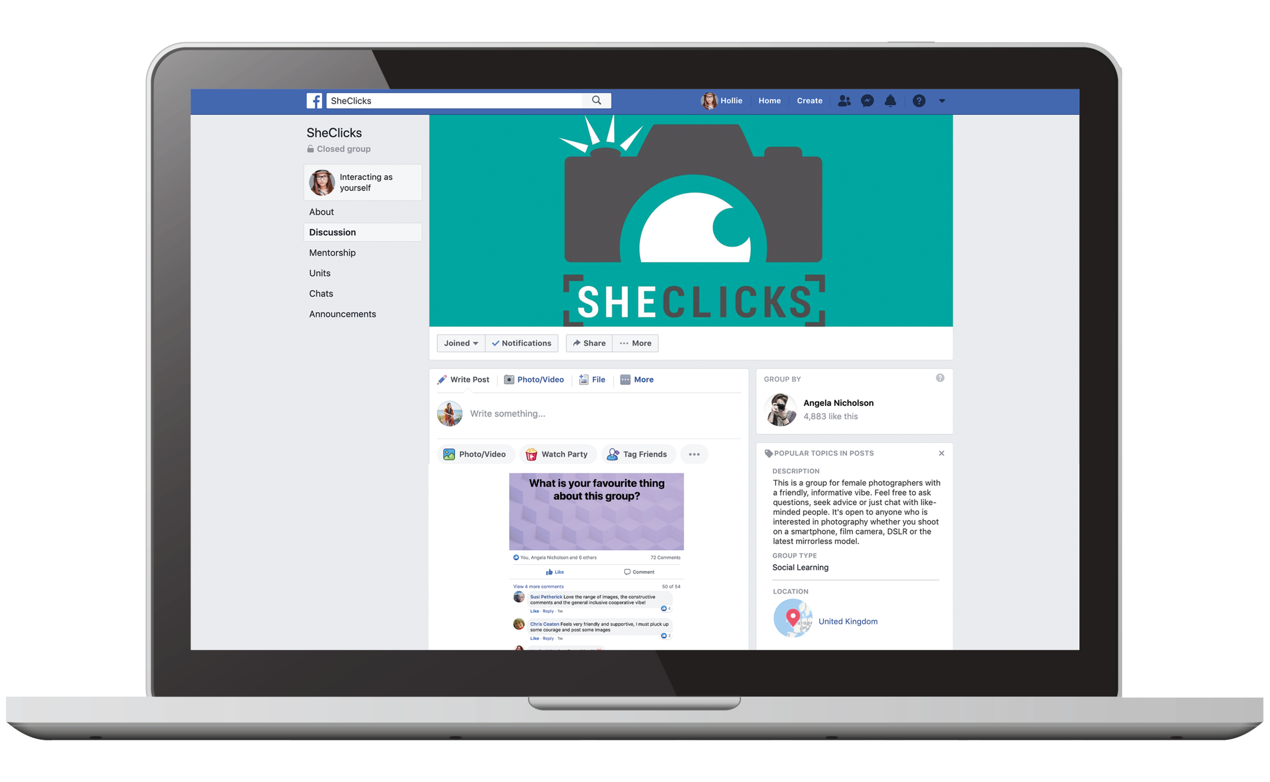SheClicks was founded in August 2018 by Angela Nicholson, beginning life as a Facebook group.