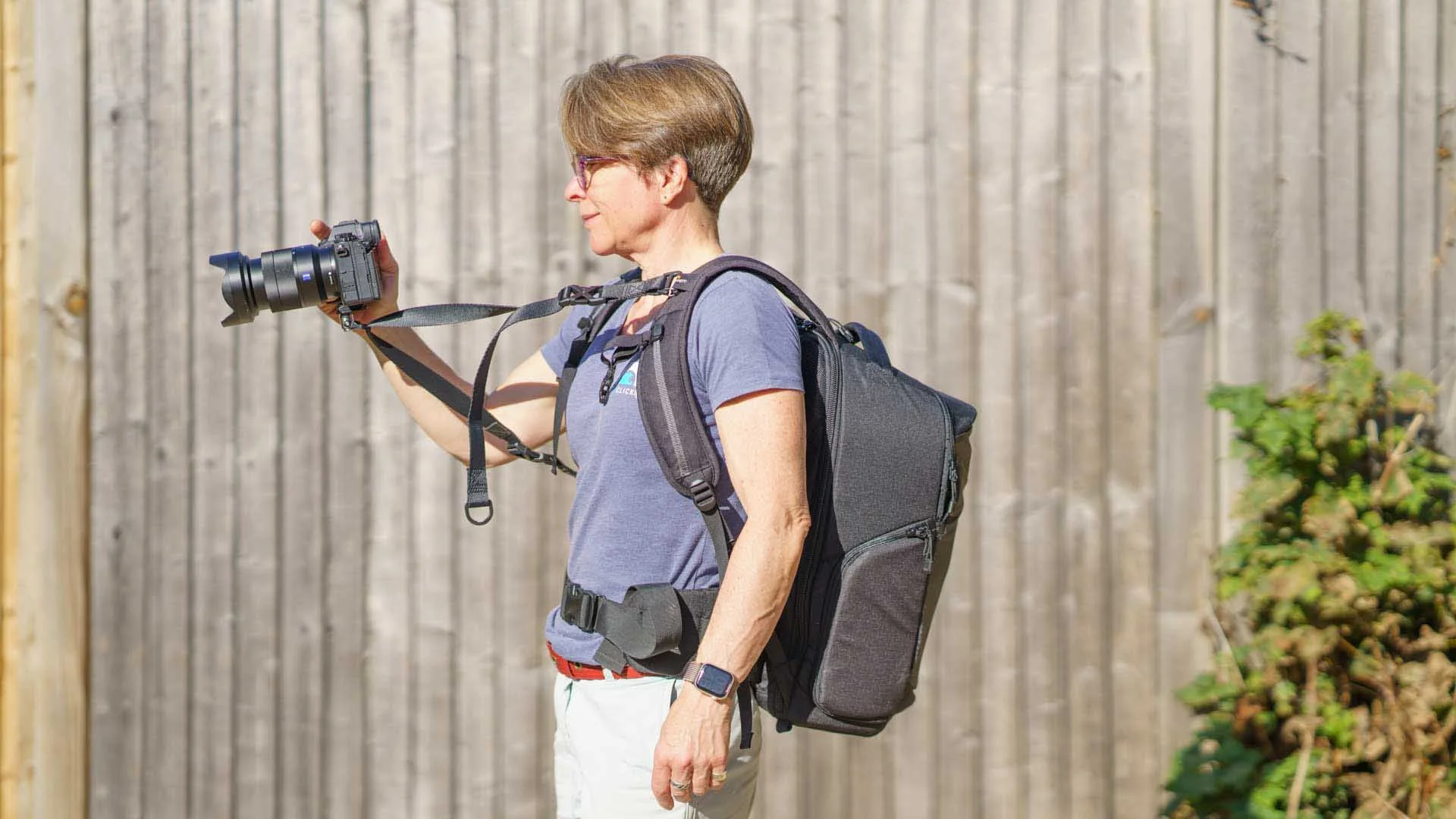 When walking around, the camera felt secure and easy to access, while the backpack’s harness distributed the load.