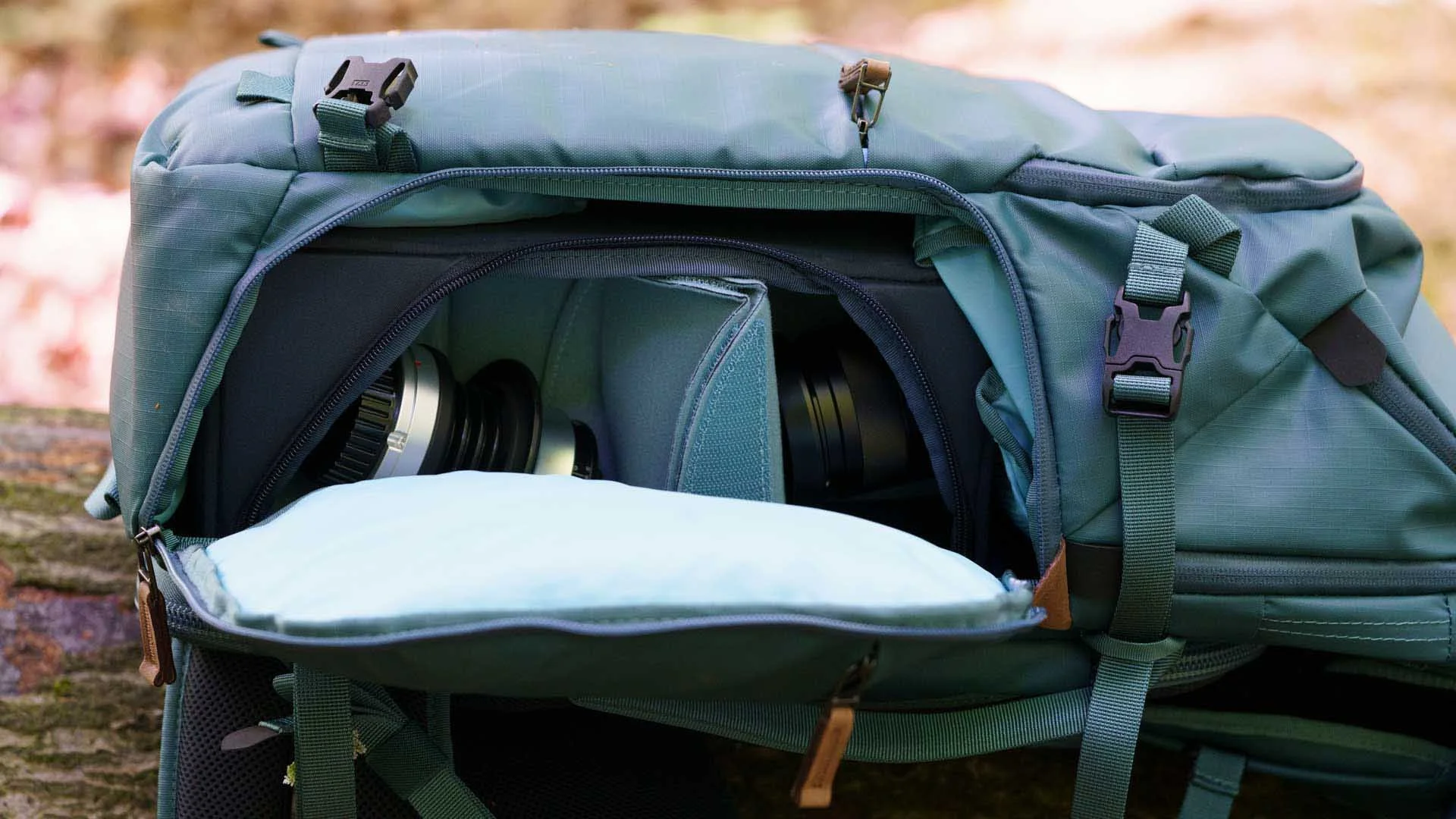 As the Shimoda Women’s Series Explore v2 backpacks open from the rear, you have to take the bag off your back to access your kit in the main compartment. The key benefit of this is that nobody can get into the main section of the bag while you’re carrying it. Another bonus of this approach is that you don’t have to put the straps and back of the bag on the gound to open the main section. It prevents you from getting covered in mud.