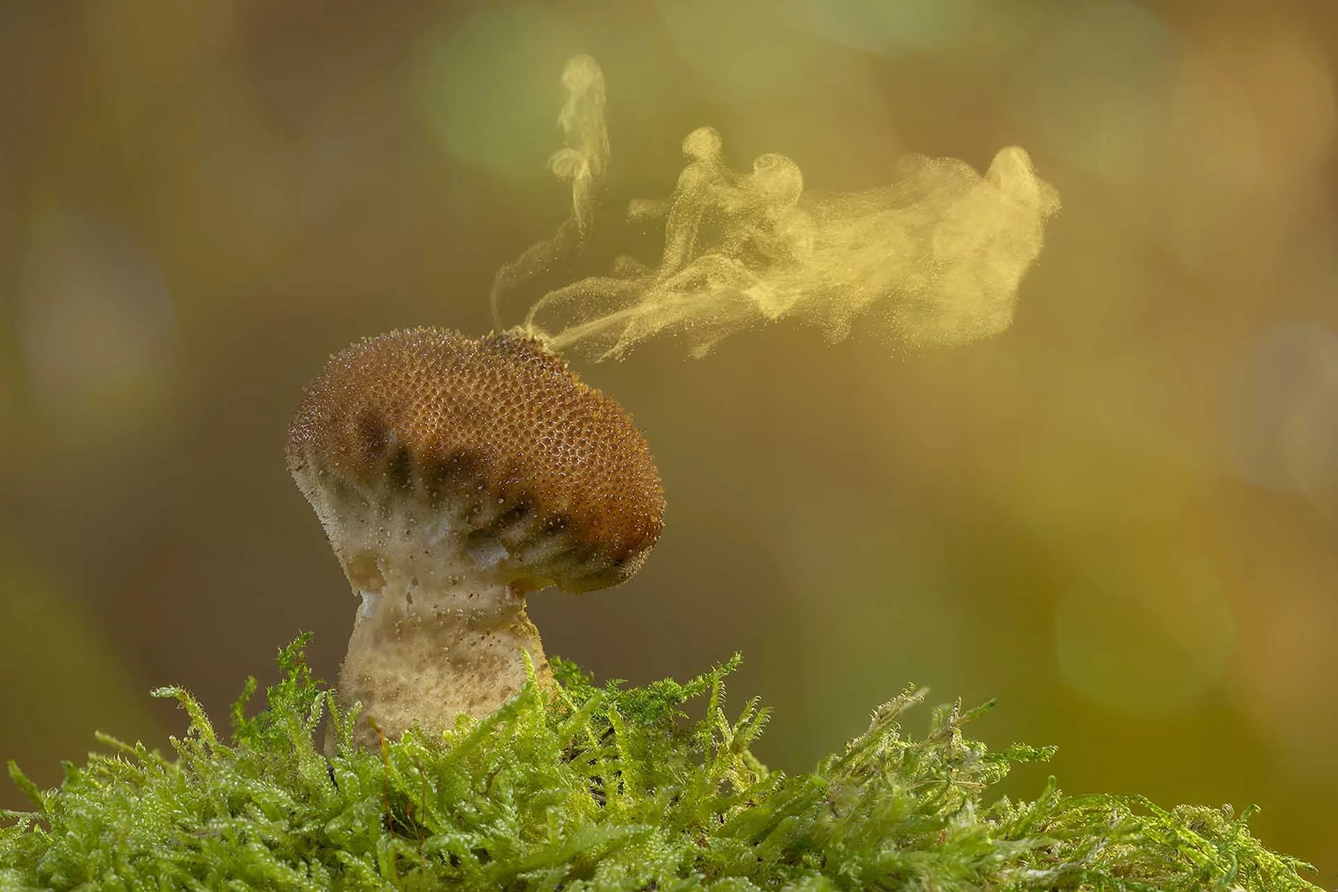 Lying on a woodland floor covered in moss, surrounded by woodland plants, fungi and insects, with the sounds of nature all around me.
